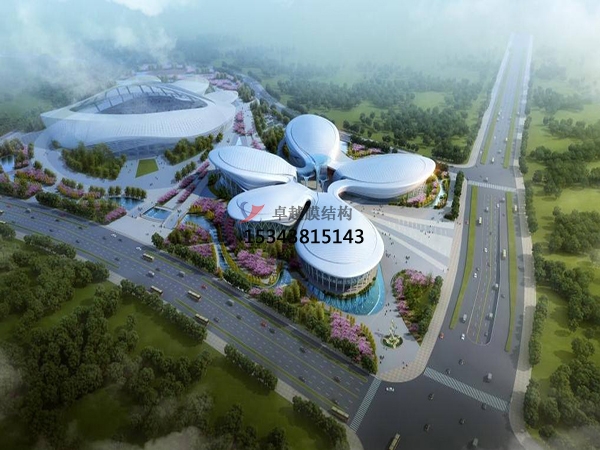 1、膜結構公司建議采用分塊吊裝的方法,就是將膜體按平面位置分為若干作業(yè)塊,每塊膜體同樣采用多點整體吊裝技術,整體吊裝到位。若采用整體提升技術,要求投入的設備和人員較多,施工準備期較長。在整個安裝過程中要特別注意防止膜體在風荷載作用下產生過大的晃動。