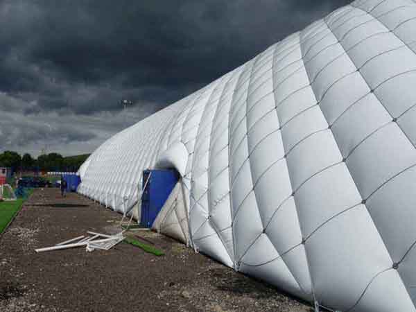 空間,并在氣膜表面形成巨大的張力。即使有漏風(fēng),也不會(huì)倒塌。氣膜樓上層建筑離地面約需30分鐘,距離地面約2米,且有足夠的時(shí)間確保氣膜貯