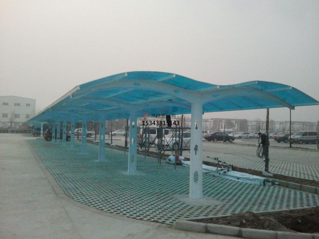 商業(yè)廣場雨棚搭建設(shè)計特別適合用來建造城市標志性建筑的屋頂,如體育與娛樂性場館,需有廣告效應(yīng)的商場、餐廳等。城市的交通樞紐是城市命脈的關(guān)鍵性建筑,使用功能要求建筑物各組成單元的標志明確。因而近來年,這類建筑越來越多采用膜結(jié)構(gòu)。建筑膜材料的使用壽命為 25 年以上。在使用期間,在雪或風荷載作用下均能保持材料的力學(xué)形態(tài)穩(wěn)定不變。建成于 1973 年的美國加州 La Verne 大學(xué)的學(xué)生活動中心是已有 23 年歷史的商業(yè)廣場雨棚搭建建筑.跟蹤測試與材料的加載與加速氣候變化的試驗,證明它的膜材料的力學(xué)性能與化學(xué)穩(wěn)定性指標下降了 20 %至 30 %,但仍可正常使用。膜的表層光滑,具有彈性,大氣中的灰塵、化學(xué)物質(zhì)的微粒極難附著與滲透,經(jīng)雨水的沖刷建筑膜可恢復(fù)其原有的清潔面層與透光性。