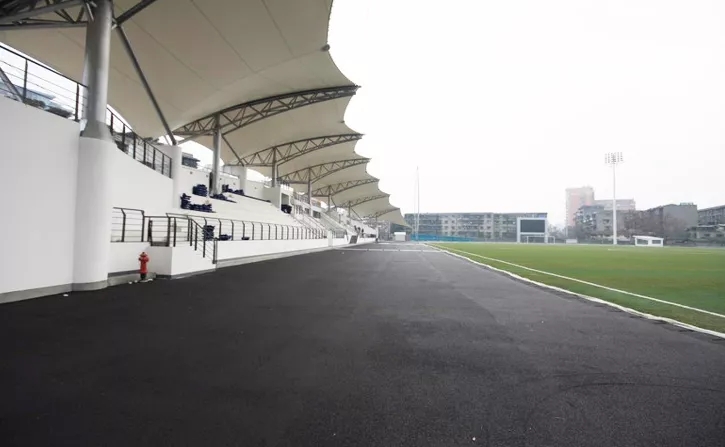 另外是隨著時(shí)間的推移,PTFE建筑膜材的顏色會(huì)逐漸的由原來的淡黃色變?yōu)榘咨?,下面是景天膜結(jié)構(gòu)之前的一個(gè)案例,銀行學(xué)校PTFE膜結(jié)構(gòu)看臺(tái)剛建成以及以建成之后的對(duì)比照片。