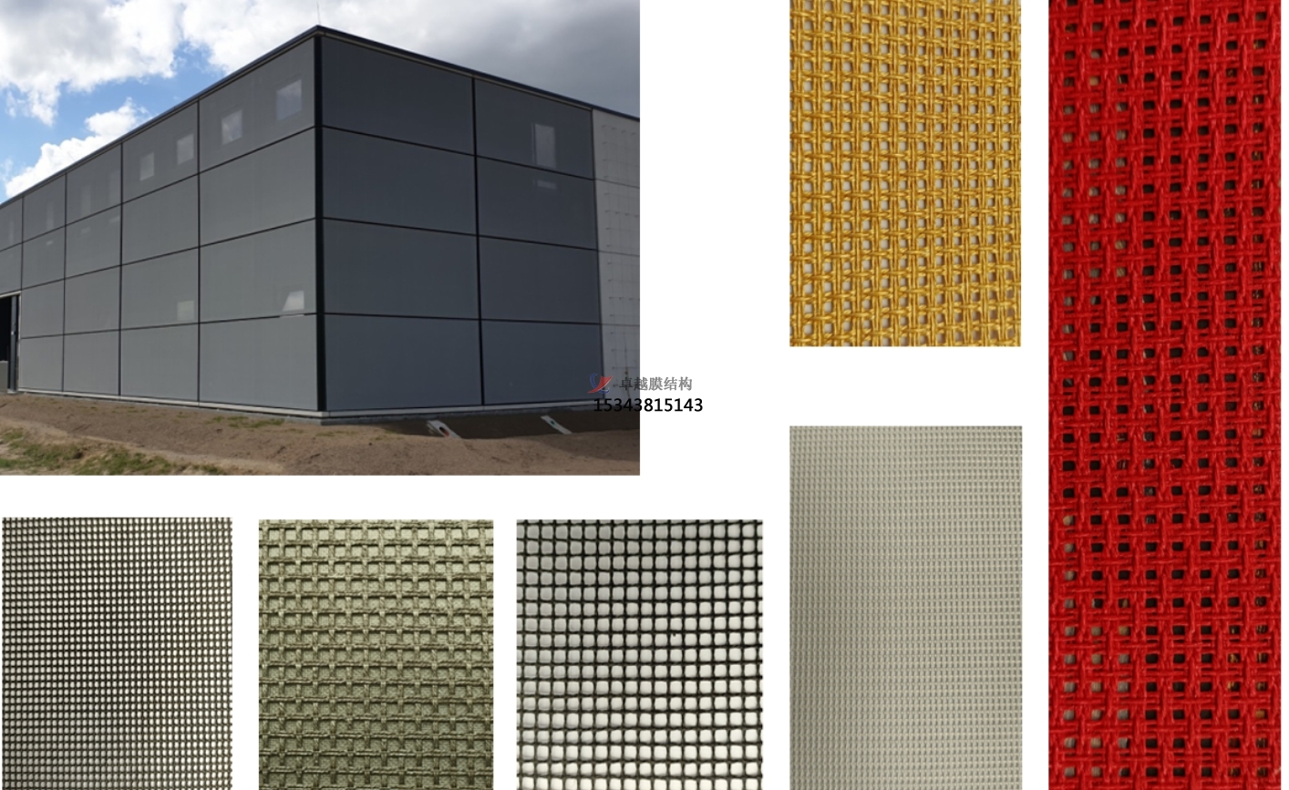 PTFE網(wǎng)格膜,基材紗線編織間距很大,涂層不再是滿覆,形成一定的開孔率(20~70%)。特點是透光率高(30~70%,透光透景)、裝飾遮陽效果好;強度低于外膜、透氣透水、不吸音。