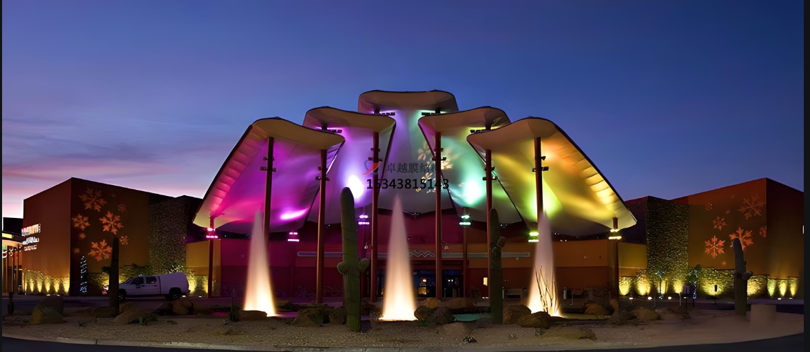 膜材性能:PVDF 膜材有多種性能指標需要考慮。其強度應滿足結(jié)構(gòu)承載要求,包括拉伸強度、撕裂強度等;耐久性方面,要能抵抗紫外線、老化、腐蝕等環(huán)境因素的影響,保證膜結(jié)構(gòu)在設計使用年限內(nèi)性能穩(wěn)定;自潔性要好,便于保持膜面清潔,減少維護成本;此外,還要根據(jù)建筑的使用要求,選擇合適的透光率和色彩。