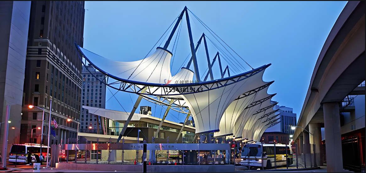 造型與空間:根據(jù)建筑的使用功能和環(huán)境特點,設計出獨特的造型和空間布局。膜結(jié)構(gòu)可以實現(xiàn)大跨度、無柱空間,如體育館、展覽館等,也能創(chuàng)造出輕盈、靈動的建筑外觀,如景觀小品、遮陽設施等。同時,要考慮膜結(jié)構(gòu)與周邊環(huán)境的協(xié)調(diào)性,使其融入整體環(huán)境之中。