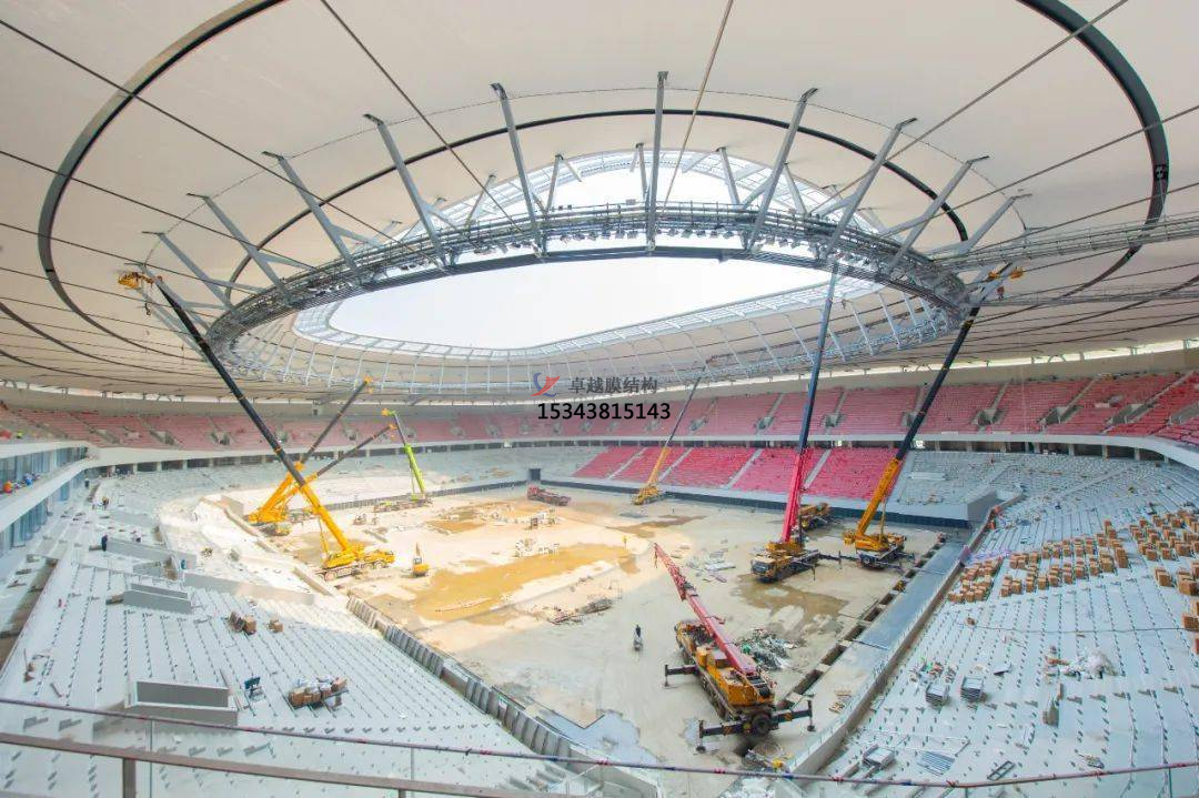 材料質(zhì)量: 使用高質(zhì)量、耐候性強(qiáng)的膜材料是保證結(jié)構(gòu)壽命的關(guān)鍵。常用的膜材料包括聚氟乙烯(PTFE)、聚氯乙烯(PVC)和氟碳聚合物(ETFE)等。