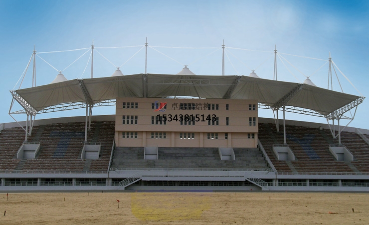 訂制體育場(chǎng)膜結(jié)構(gòu)看臺(tái)具有環(huán)保與安全性能。其可持續(xù)性設(shè)計(jì),通過(guò)透光膜材減少照明能耗,自潔涂層可降低維護(hù)成本。材料可回收,施工過(guò)程減少?gòu)U棄物排放。需通過(guò)結(jié)構(gòu)強(qiáng)度、抗老化、耐風(fēng)壓等多輪測(cè)試,確保50年以上使用壽命。在訂制體育場(chǎng)膜結(jié)構(gòu)看臺(tái)時(shí),要選擇有經(jīng)驗(yàn)、信譽(yù)好的設(shè)計(jì)和施工團(tuán)隊(duì),嚴(yán)格按照相關(guān)規(guī)范和標(biāo)準(zhǔn)進(jìn)行操作,以確保看臺(tái)的質(zhì)量和安全性。