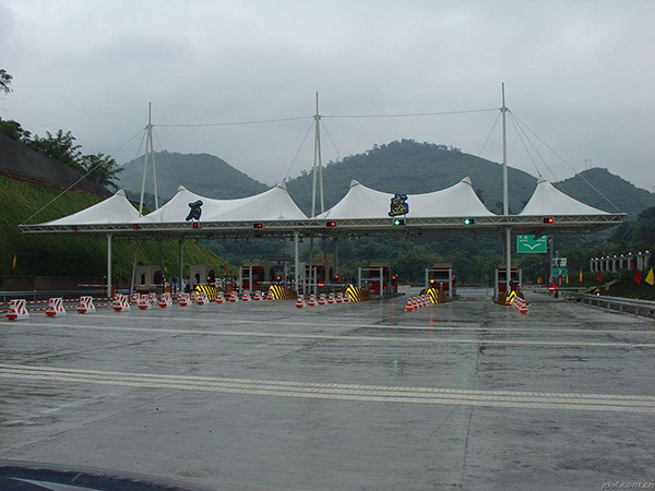 玉林卓越膜結(jié)構(gòu)工程公司是專業(yè)從事收費(fèi)站雨棚,高速高速公路膜結(jié)構(gòu)、高速服務(wù)區(qū)充電站配套雨棚,高速公路服務(wù)區(qū)景觀遮陽棚,高速公路加油站罩棚的專業(yè)廠家,擁有一批國內(nèi)更早從事膜結(jié)構(gòu)行業(yè)的工程技術(shù)人才,并與玉林地區(qū)各著名設(shè)計(jì)院、大學(xué)都有緊密合作,使用國際更先進(jìn)的膜結(jié)構(gòu)建筑設(shè)計(jì)軟件、荷載分析軟件、找型裁剪軟件、結(jié)構(gòu)計(jì)算軟件,充分保證了玉林卓越公司在中國膜結(jié)構(gòu)領(lǐng)域技術(shù)領(lǐng)先性。下面給各位介紹一下我公司在玉林及周邊縣市完工的一批高速公路收費(fèi)站膜結(jié)構(gòu)工程案例。