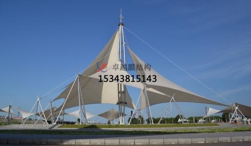 一個城市的中心區(qū)反映一個城市的地理風貌和民族風情,一起,也是一個城市文化開展程度的標志。而景象規(guī)劃要求其具有廣泛的可讀性、老少皆宜,既有超凡脫俗的藝術價值,又能使群眾喜聞樂見與群眾息息相通。張拉膜以其輕盈飄逸的造型、柔美并帶有力氣的曲線和大跨度和大空間的鮮明個性和標識性,應用于城市小品規(guī)劃中。