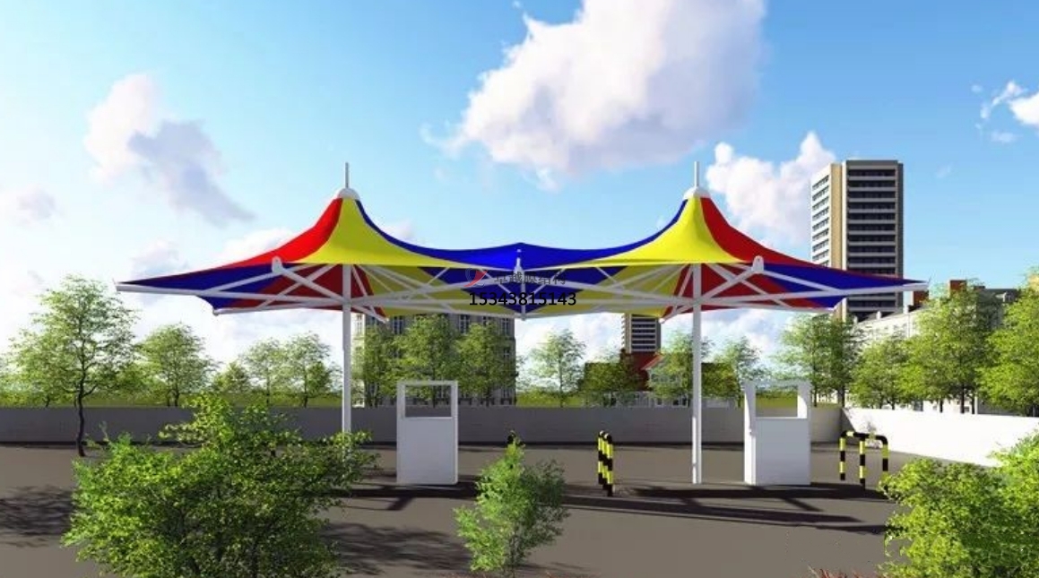 加油站的膜結(jié)構(gòu)適合采用的形式有:多點(diǎn)對稱拋物面、組合拋物面、馬鞍形拋物面錐形雙曲拋物面、拱支承型等等。膜結(jié)構(gòu)的鋼構(gòu)件、膜面及其它零配件都是工廠預(yù)制件,安裝方便,施工時(shí)間很短。非常適合工期緊,需要短時(shí)間投入運(yùn)營的加油站工程。