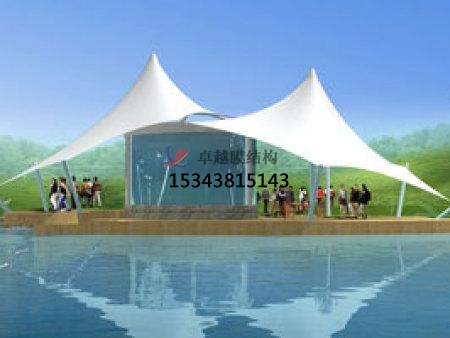 定義:張拉膜景觀是20世紀中期發(fā)展起來的一種新型建筑結構形式,是由多種高強薄膜材料(PVC或Teflon)及加強構件(鋼架、鋼柱或鋼索)通過一定方式使其內部產生一定的預張應力以形成某種空間形狀,作為覆蓋結構,并能承受一定的外荷載作用的一種空間結構形式.
