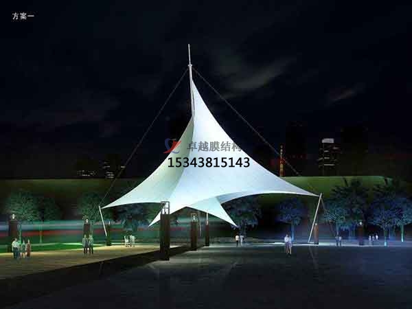 2、一個城市的中心區(qū)反映一個城市的地理風貌和民族風情,同時,也是一個城市文化發(fā)展程度的標志。而景觀設計要求其具有廣泛的可讀性、雅俗共賞,既有超凡脫俗的藝術價值,又能使大眾喜聞樂見與大眾息息相通。張拉膜以其輕盈飄逸的造型、柔美并帶有力量的曲線和大跨度和大空間的鮮明個性和標識性,應用于城市小品設計中。