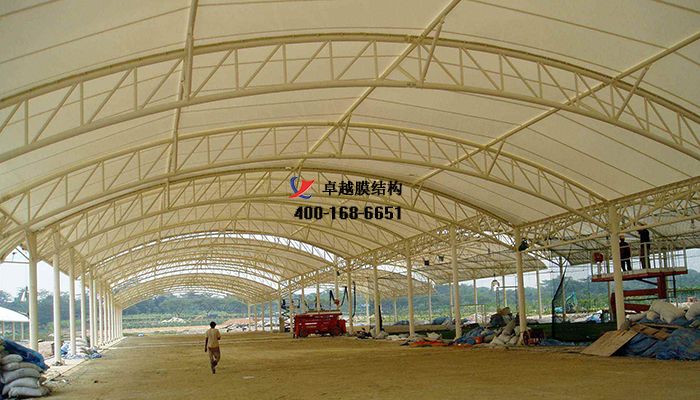 一、采用膜結(jié)構(gòu)的好處是具有良好的透光性、環(huán)保型、自清潔性,一般膜材表面采用PVDF(聚偏二氟乙烯)涂層、或二氧化鈦涂層,具有較好的隔熱效果,透光率好等特性??梢愿鶕?jù)客戶的需求定制膜材。