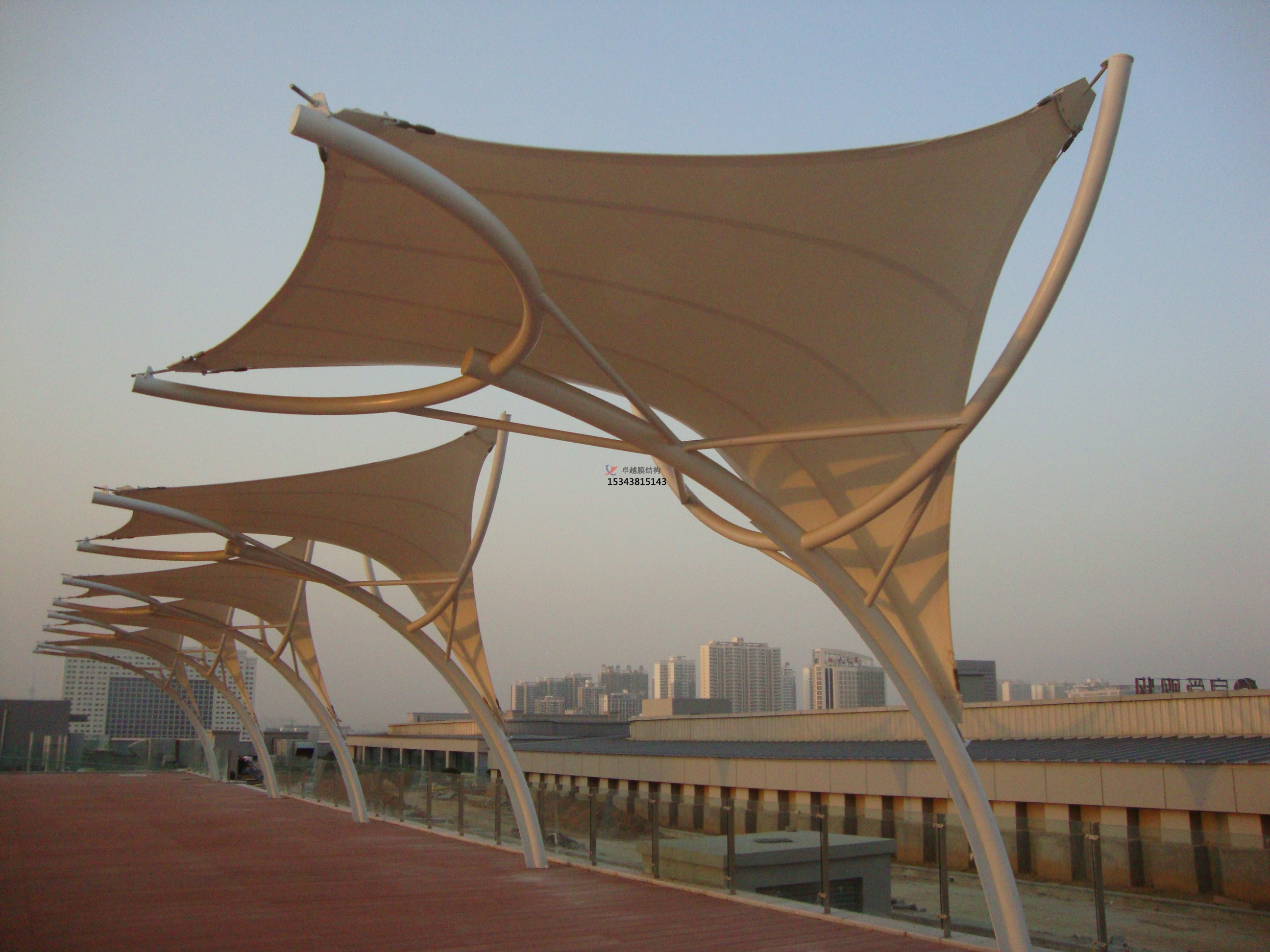 鄭州卓越膜結(jié)構(gòu)工程有限公司是一家專業(yè)從事大跨度膜結(jié)構(gòu)技術開發(fā)、設計、加工、安裝、維護的大型膜結(jié)構(gòu)企業(yè)。是集膜結(jié)構(gòu)項目規(guī)劃、方案設計、結(jié)構(gòu)設計、靜動力學計算分析、鋼膜工程預算、鋼膜加工、整體結(jié)構(gòu)安裝以及使用維護于一體的綜合性工程公司。