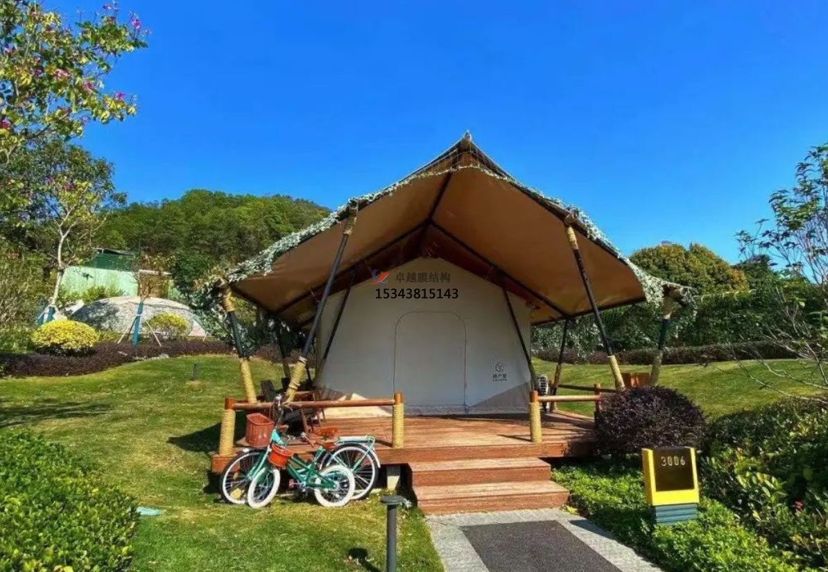 膜結(jié)構(gòu)帳篷酒店采用模塊化設(shè)計,可以快速組裝和拆卸,具有較大的靈活性。根據(jù)需求的變化,可以進(jìn)行調(diào)整和擴(kuò)展。這使得它在臨時活動場所、戶外露營區(qū)和旅游度假勝地等場景中都得到廣泛運(yùn)用。