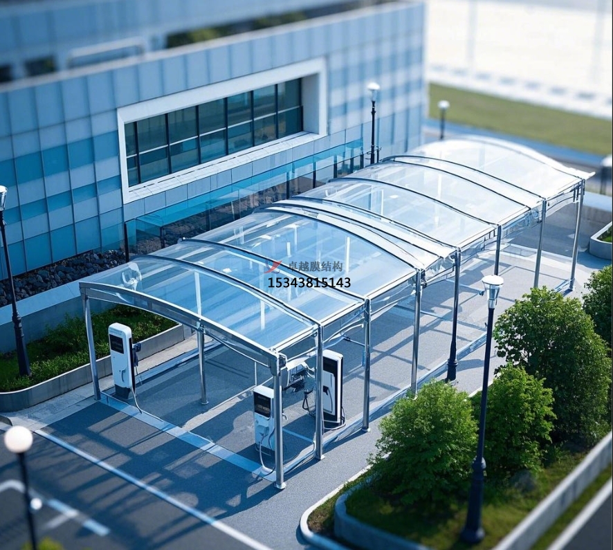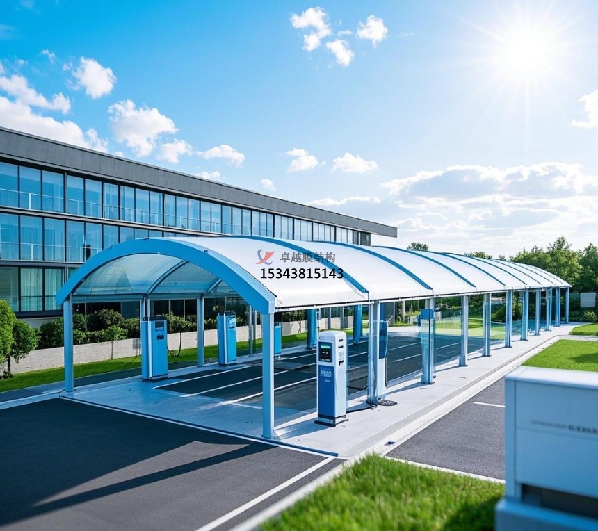 在全球大力推進新能源汽車開展的浪潮中,充電站作為關(guān)鍵配套設(shè)施,其建造正如火如荼地進行。而充電站膜結(jié)構(gòu)罩棚,憑仗本身共同優(yōu)勢,逐漸成為很多充電站建造的理想挑選,為新能源汽車的充電進程供給了牢靠保證,一起也為城市增添了異樣的現(xiàn)代氣味。