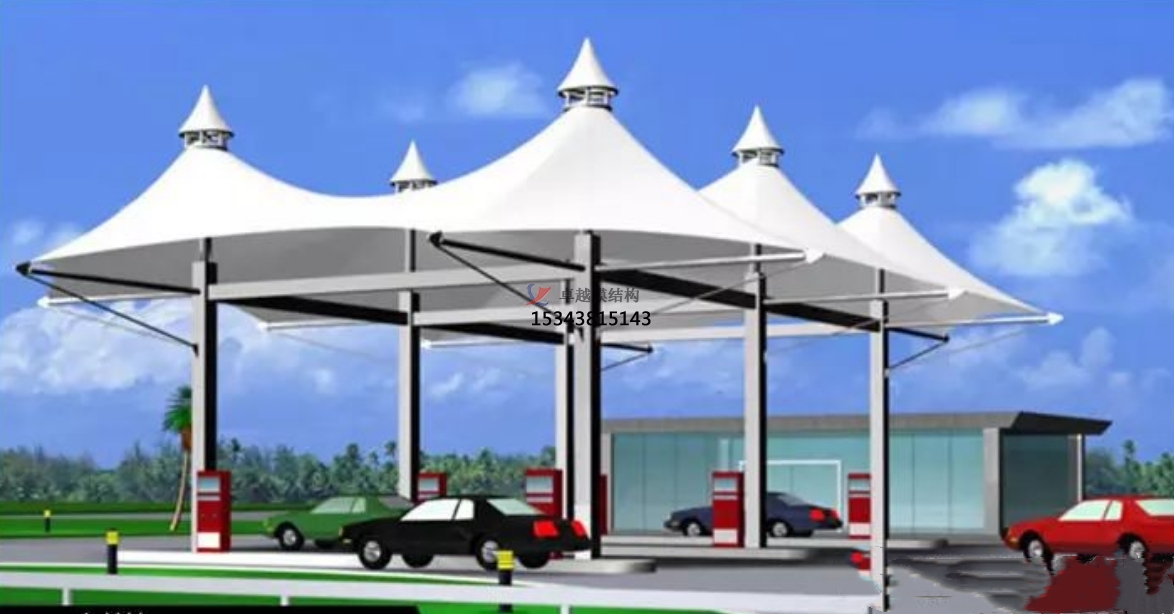 加油站膜結(jié)構(gòu)憑借其顯著區(qū)別與其他結(jié)構(gòu)的獨(dú)特外形,能迅速的抓住顧客的眼球,瞬時(shí)拉近與顧客的距離。