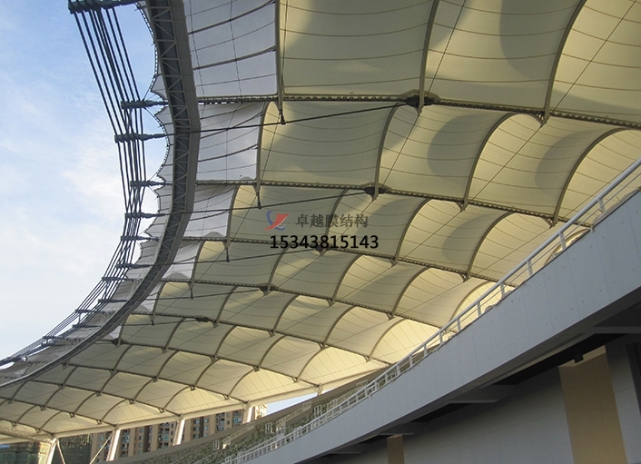 關于索膜解構(gòu)的技術難點和維護。其技術難點主要是需要精密找形分析、分步張拉(如分12步提升無錫奧體索網(wǎng)),膜片熱合縫寬度需≥40mm(P類膜材)以確保強度。在維護方面也有要求,需要定期檢查膜面張力,規(guī)避局部集中荷載;清洗時禁用化學腐蝕劑,依賴雨水自潔或低壓水槍。索膜解構(gòu)作為綠色建筑代表,正融合碳纖維索(如國內(nèi)最長筋索應用)提升耐久性,并探索與BIM技術結(jié)合優(yōu)化設計施工一體化流程。索膜結(jié)構(gòu)通過“力與形”的結(jié)合,突破傳統(tǒng)建筑局限,未來將在可持續(xù)建筑中持續(xù)發(fā)揮創(chuàng)新價值。