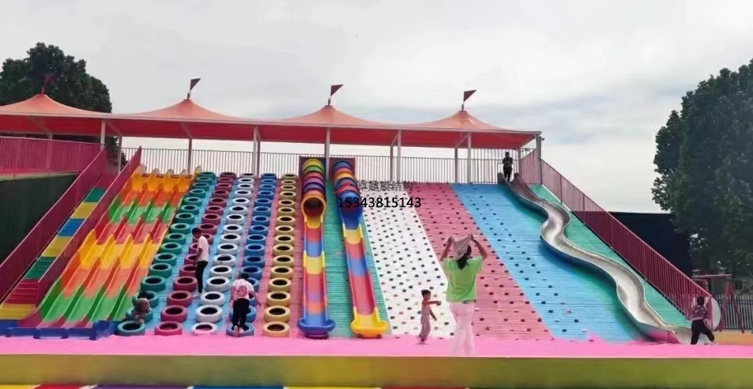 彩色膜結(jié)構(gòu)的設(shè)計(jì)靈活多變,可以根據(jù)具體需求定制成各種形狀和尺寸。它們不僅可以為游樂(lè)設(shè)備提供遮陽(yáng)、避雨的功能,還可以創(chuàng)造出各種具有視覺(jué)沖擊力的藝術(shù)造型,提升整個(gè)游樂(lè)場(chǎng)的氛圍和吸引力。