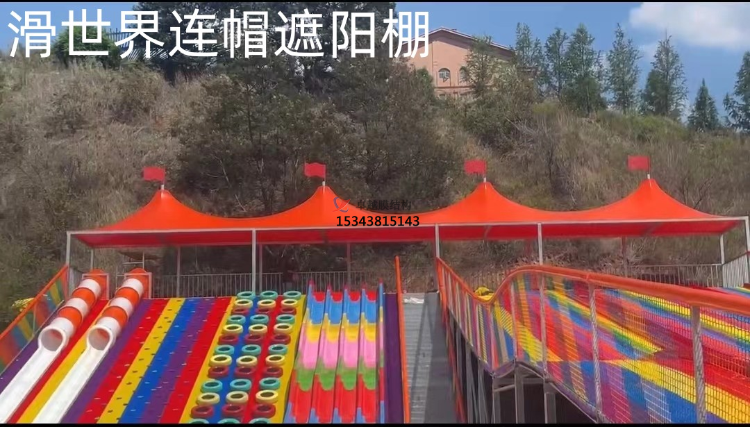 樂園內的遮陽棚設計獨特,既可遮陽又可擋雨,為游客提供了一個舒適的游玩環(huán)境。遮陽棚采用輕質、高強度的材料制成,具有良好的抗風抗壓性能,即使在惡劣的天氣條件下也能為游客提供保護。此外,遮陽棚的設計還充分考慮到了安全性,采用了防滑、防撞等措施,確保游客在游玩過程中的人身安全。
