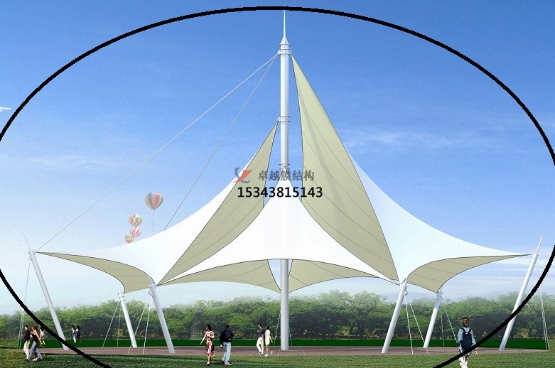 景觀園林膜結(jié)構(gòu)應(yīng)用場景:應(yīng)用場景有城市公共空間、生態(tài)與藝術(shù)重合、休閑與商業(yè)區(qū)域。城市公共空間,德國柏林花形展館采用充氣膜技術(shù),通過白色PVC膜模擬巨型花朵形態(tài),兼具遮陽、通風(fēng)及照明功能,模塊化設(shè)計可獨立或組合使用,成為會展公園的標(biāo)志性景觀,上海世博軸陽光谷以喇叭花造型膜結(jié)構(gòu)為核心,結(jié)合鋼架與水波張拉膜,形成兼具剛?cè)崽匦缘某L景觀帶。生態(tài)與藝術(shù)融合,法國盧瓦爾河畔肖蒙國際花園節(jié)的紅色花形景觀膜,通過彩膜與陶罐系統(tǒng)結(jié)合,既節(jié)水又象征生態(tài)循環(huán),具有教育與警示意義。荷蘭Leidsche Rijn公交站采用牽?;ㄔ煨湍そY(jié)構(gòu),排列整齊的形態(tài)與法拉利TX30膜材結(jié)合,成為兼具功能性與地標(biāo)性的城市設(shè)施。休閑與商業(yè)區(qū)域,景觀棚膜結(jié)構(gòu)廣泛應(yīng)用于步行街、公園綠地和景區(qū),提供遮陽避雨空間的同時,通過夜間燈光營造夢幻效果,增強(qiáng)商業(yè)吸引力。