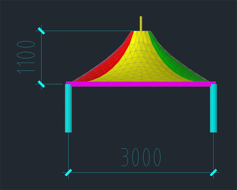這個(gè)是單帽七彩滑道膜結(jié)構(gòu)雨棚
