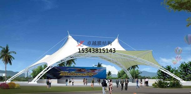 用于張拉膜景觀中的高強(qiáng)度柔韌薄膜稱(chēng)膜材,它是一種耐久用、高強(qiáng)度的涂層織物,由織物和涂層復(fù)合而成,具有質(zhì)地柔韌、厚度小、重量輕、透光性好的特點(diǎn)。對(duì)自然光吸收和透射能力、阻燃,具有良好的耐久、防火、氣密等特性;