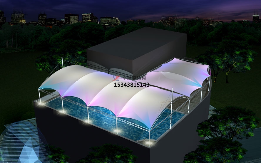 2、商業(yè)建筑:膜膜結(jié)構(gòu)建筑因新穎的建筑造型、特殊的夜景,具有十分獨特的建筑可識性和商業(yè)效應(yīng),可應(yīng)用于各種商業(yè)建筑,如大型商場、購物中心、酒店、餐廳等,小型攤位、展位、商店、步行街等,對大型封閉建筑空間應(yīng)進行建筑熱工設(shè)計、光環(huán)境設(shè)計,達到保溫隔熱要求,特別設(shè)計的藝術(shù)燈光效果,聲學(xué)環(huán)境一般不特殊要求。