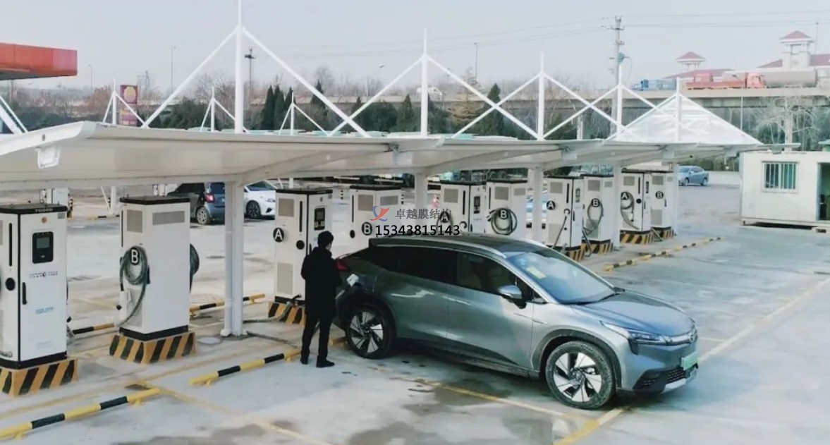 此外,膜結(jié)構(gòu)罩棚的空間利用率高,能夠在有限的面積內(nèi)容納更多的充電車位,滿足日益增長的充電需求。其靈活的布局設(shè)計也使得充電站能夠根據(jù)實際情況進(jìn)行調(diào)整,適應(yīng)不同場景的需求。