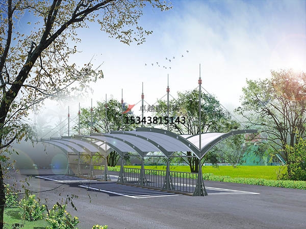 第點(diǎn),膜結(jié)構(gòu)停車(chē)棚頂部封板采用茶色(顏色可挑選)陽(yáng)光板封頂,與車(chē)棚整體骨架用壓條鉚接固定,耐酸堿腐蝕,有足夠強(qiáng)度對(duì)棚內(nèi)車(chē)輛起到保護(hù)作用;