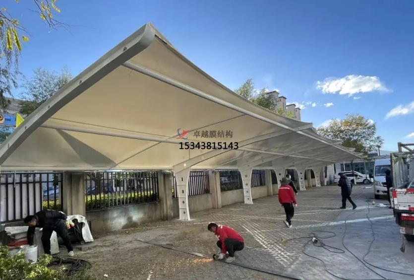 優(yōu)質(zhì)的膜結(jié)構(gòu)材料具有很強(qiáng)的耐久性,能夠抵抗風(fēng)雨、紫外線(xiàn)等自然因素的侵蝕。對(duì)于7字型車(chē)棚來(lái)說(shuō),這種耐用性可以保證其長(zhǎng)期穩(wěn)定地為車(chē)輛提供保護(hù)。同時(shí),膜結(jié)構(gòu)的維護(hù)相對(duì)簡(jiǎn)單,定期檢查膜材的表面有無(wú)破損、積水等情況,進(jìn)行簡(jiǎn)單的清潔和修補(bǔ)即可,不需要復(fù)雜的維護(hù)程序和高額的維護(hù)成本。