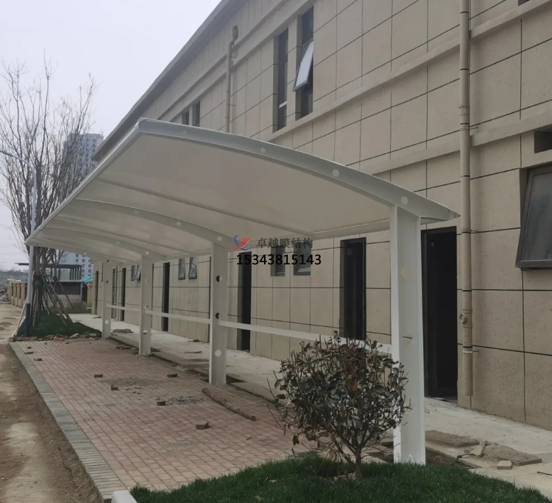 除了停車(chē)功能外,7字型膜結(jié)構(gòu)車(chē)棚的一側(cè)可以與建筑物相連,形成一個(gè)過(guò)渡空間。這個(gè)過(guò)渡空間可以有多種用途,比如作為行人的遮雨棚、自行車(chē)停放處,或者設(shè)置為休息區(qū)。這種多功能的設(shè)計(jì),為人們的生活和使用帶來(lái)了更多的便利,提升了整個(gè)區(qū)域的實(shí)用性。