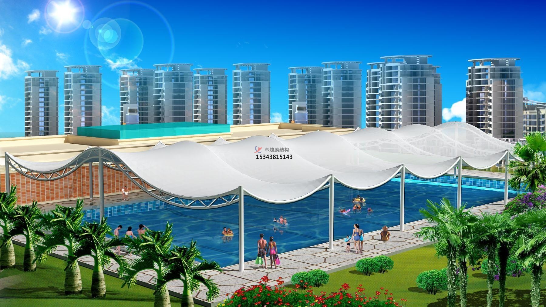 1、膜結(jié)構(gòu)景觀雖然膜結(jié)構(gòu)并不受到剝離力。但是在膜材料的接合部,膜材料是不接連的。接合部的強度是靠涂層之間的接合力及基布與涂層之間的剝離強度來保持的。