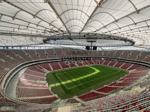 The mainstream membrane materials for sports stadium membrane structures include three types: PVC membrane material, PTFE membrane material, and ETFE membrane material. Among them, the characteristics of PVC membrane material are medium strength, with a thickness of about 1.0mm, and a relatively high tensile strength, equivalent to half of that of steel. It has good elasticity, which is conducive to forming complex curved surface shapes. It can filter out most ultraviolet rays, prevent internal items from fading, and has a natural light transmission rate of up to 10%, which can produce uniform diffused light. After special surface treatment, it has self-cleaning properties, and rainwater can naturally clean its surface. PTFE membrane material, also known as polytetrafluoroethylene membrane material, has the characteristics of light weight, high strength, corrosion resistance, and good self-cleaning performance. It is a core component of steel membrane structures, and its quality directly affects the safety performance and service life of the entire structure. It is widely used in the roof and canopy structures of stadiums. ETFE membrane material has the advantages of high transparency, strong weather resistance, and good impact resistance. It is light in weight and has good acoustic and fire-resistant properties. It is often used in sports stadiums with high requirements for lighting and aesthetics.